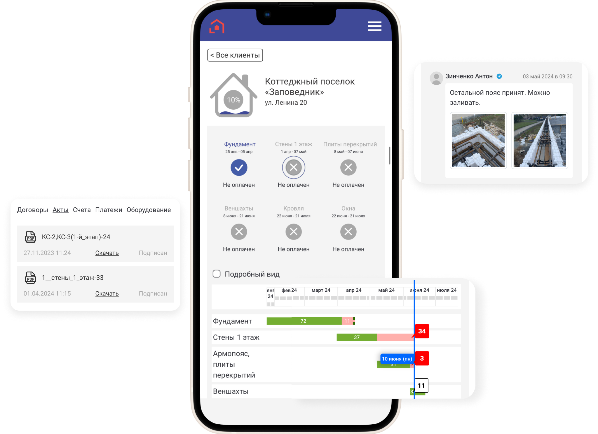 Команда, клиенты, сроки, задачи, документы — всё это в одном месте на экране компьютера или телефона.