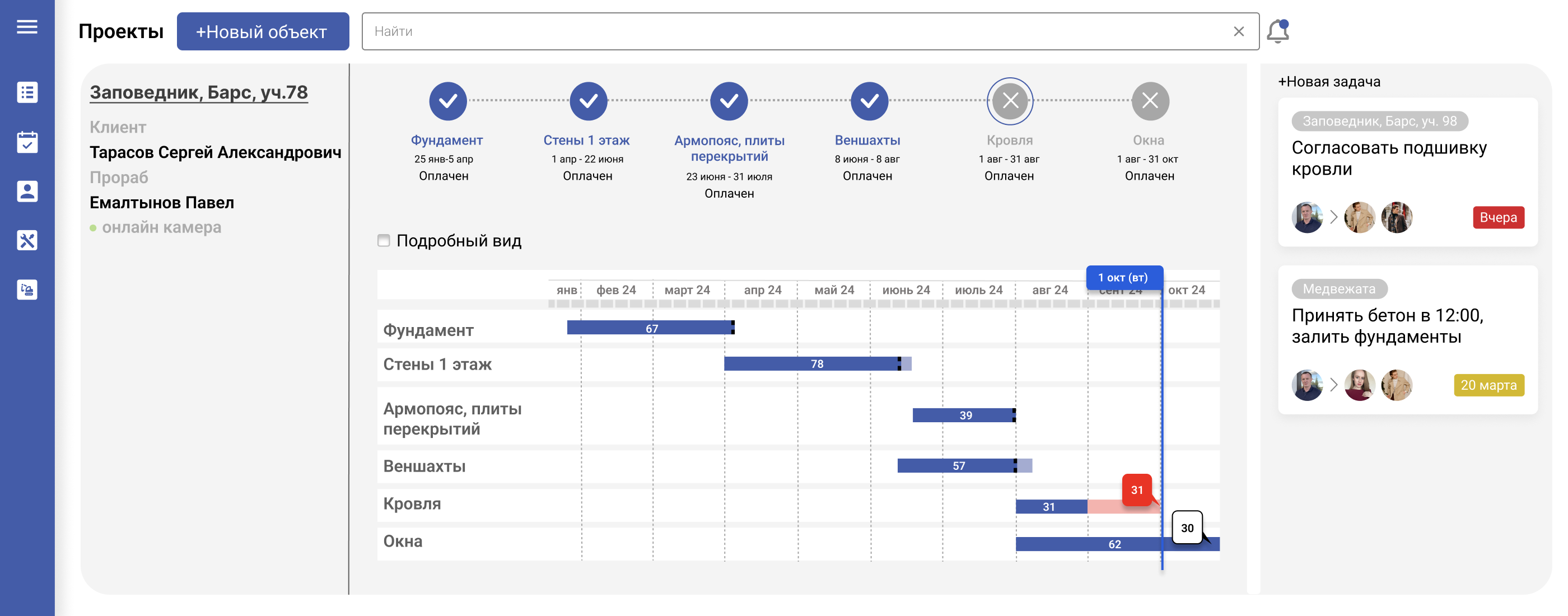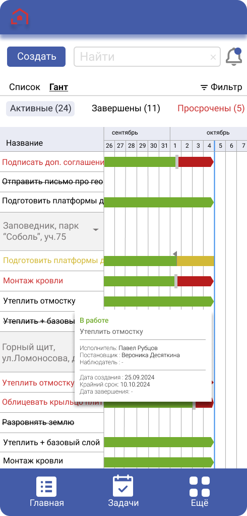 Смотрите, где вы отстаете от графика, распределяйте и корректируйте бригады.